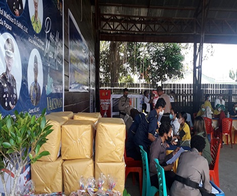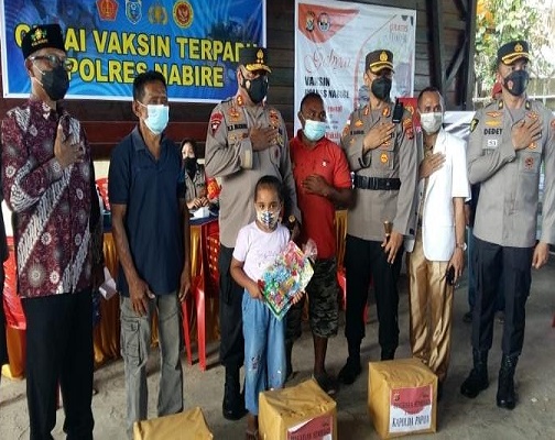 Selanjutnya, Kapolda Papua serta Forkopimda terkait memberikan bantuan sembako kepada masyarakat yang telah selesai melakukan Vaksinasi.
