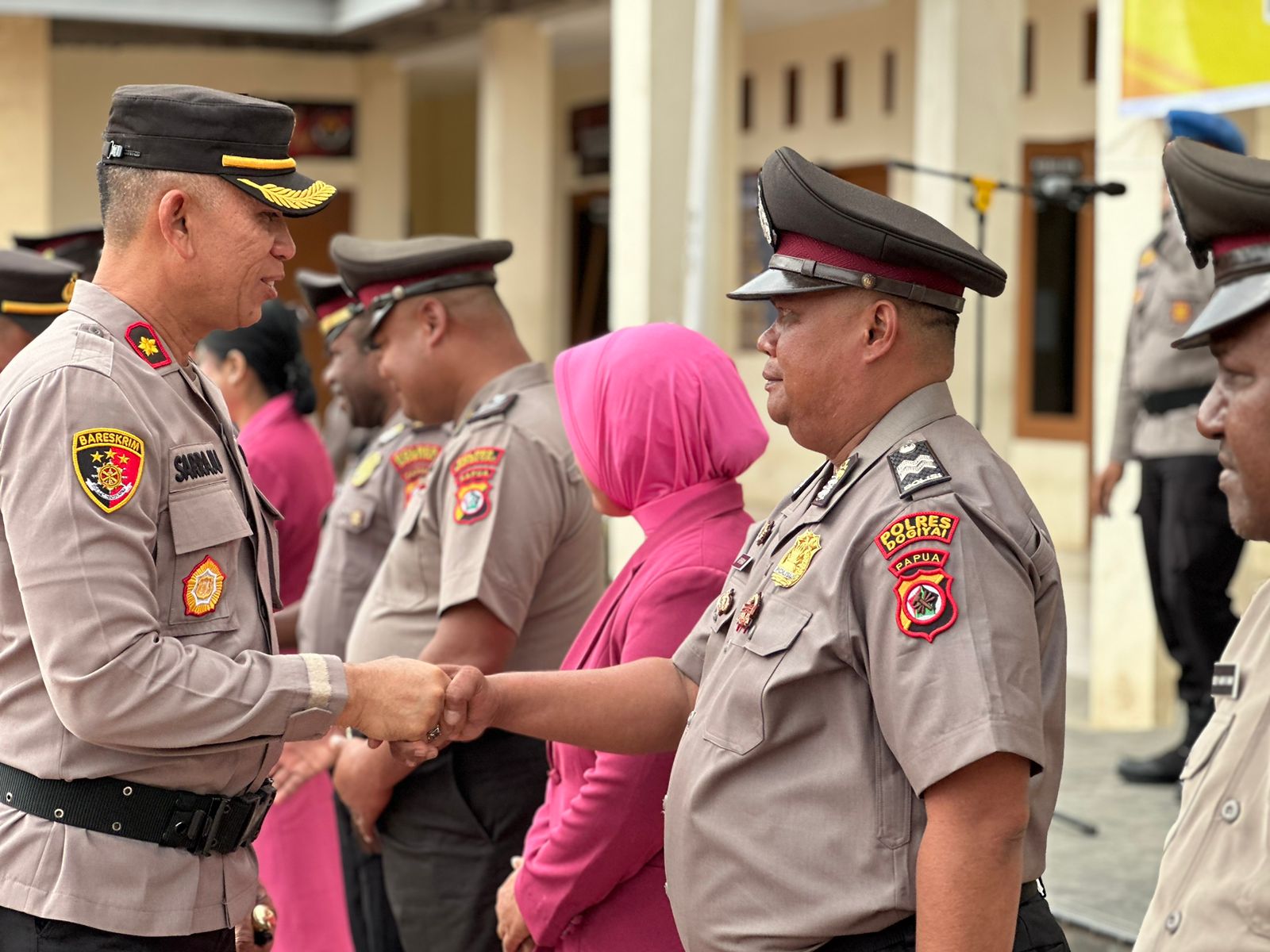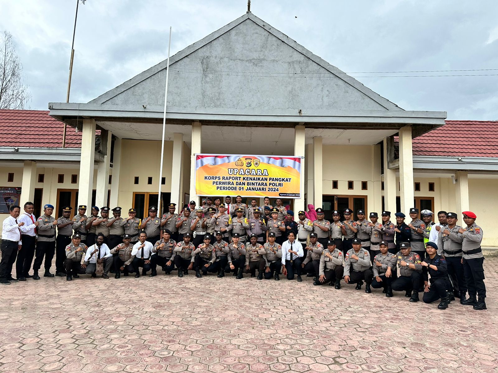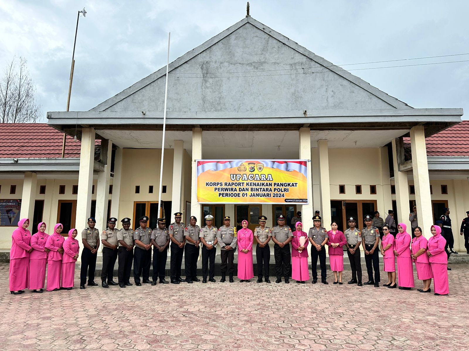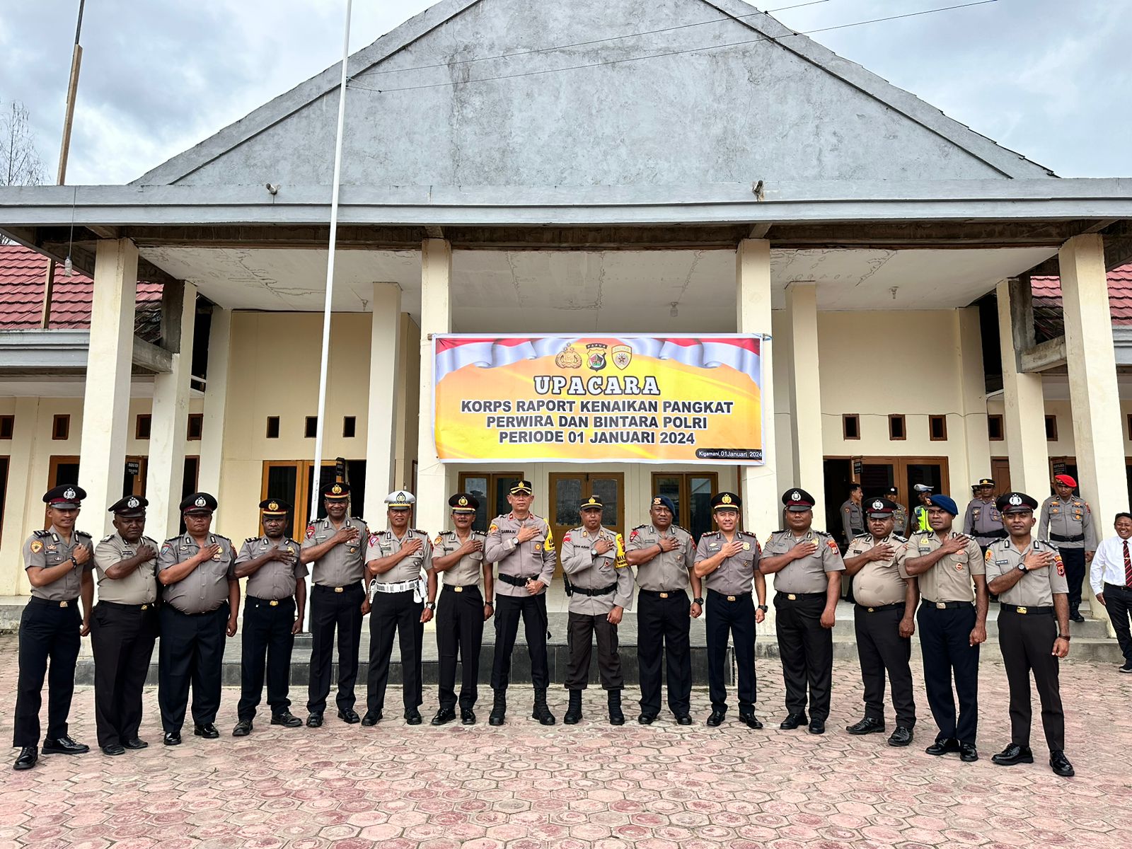 Dogiyai. Polres Dogiyai menggelar Upacara Korps Raport kenaikan pangkat Perwira dan Bintara anggota Polres Dogiyai periode 1 Januari 2024.