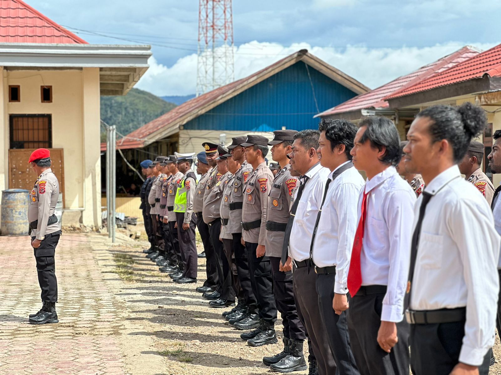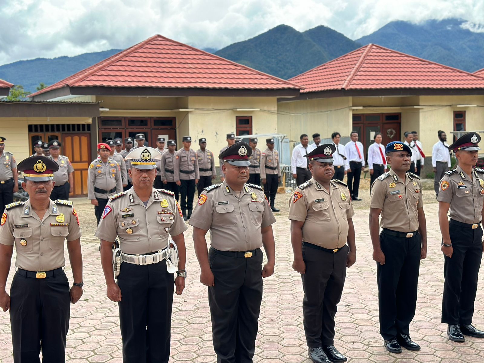 Tampak hadir dalam Korp Raport tersebut, Kabag Ren Polres Dogiyai AKP Teguh Dwiyono, Kabag Sdm Polres Dogiyai AKP Imam Masturi, S.Sos, Danki Brimob Yon C Pelopor Nabire AKP Alex Atihuta, S.H, Kasat Intelkam Polres Dogiyai IPTU Hendra Simbolon, Kasat Lantas Polres Dogiyai IPTU Wido Purwanto, Kapolsek Kamuu IPTU Hans N. Raubaba, S.E, Kasie Was IPTU Melianus Iyai, serta 8 personil yang ikut melaksanakan korps raport.