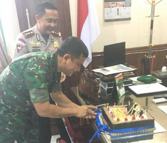 Sinergitas Polri/TNI di Nabire sangat melekat dan saling junjung solidaritas serta kekompakan. Ini yang dilakukan oleh Kapolres Nabire, AKBP Sony Sanjaya SIK ketika berkunjung di Kodim 1705/Paniai selasa siang 25 april 2017, sekaligus memberikan kejutan ulang tahun kepada Dandim 1705/Paniai, Letkol Inf Jerry HT Simatupang.