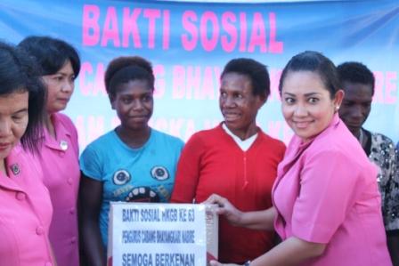 Pada kesempatan yang sama, Kapolres beserta rombongan khususnya pengurus Bhayangkari Nabire juga menggelar Bakti Sosial yang dipimpin Ketua Bhayangkari Nabire, Ibu Eva Situmeang serta Wakil Ketua Bhayangkari Nabire, Ibu Ika Irwan Sunuddin. Baksos tersebut dalam rangka HUT HKGB ke 63.
