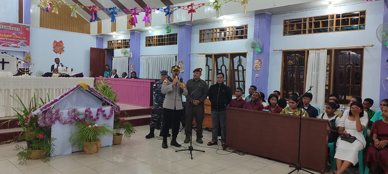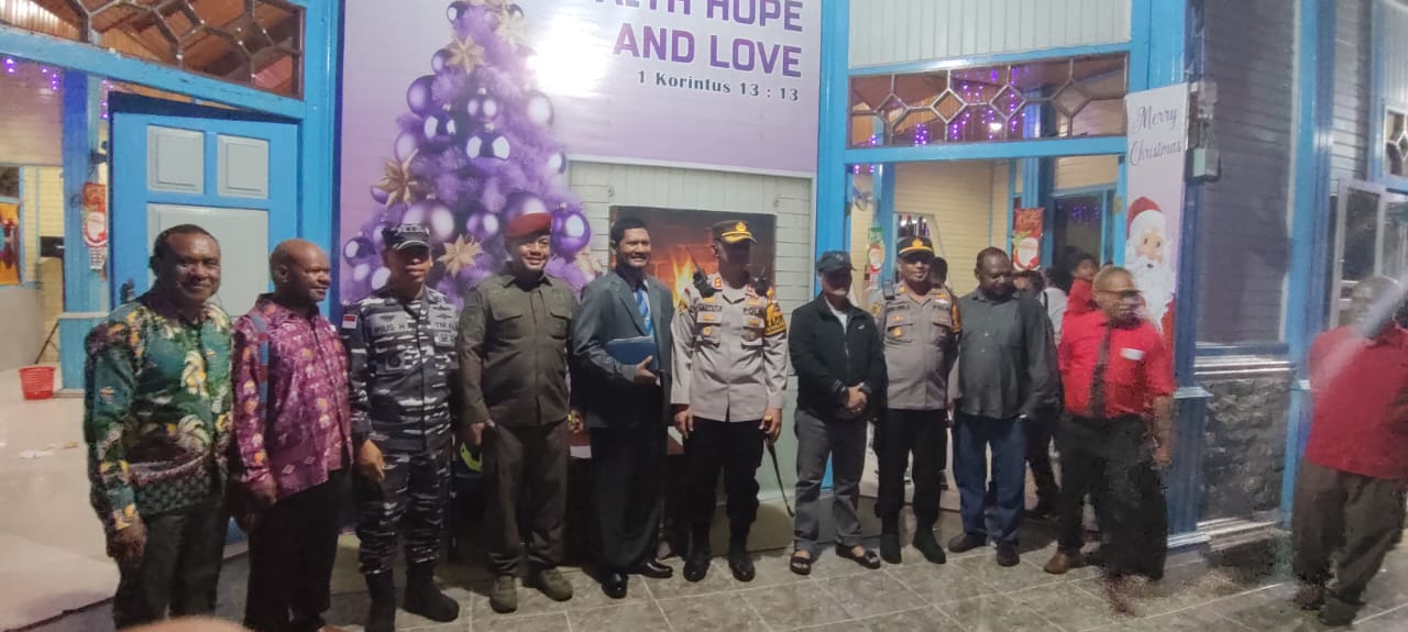 Nabire, Kapolres Nabire AKBP I Ketut Suarnaya, S.I.K., S.H., melaksanakan pengecekan langsung bersama Forkopimda Provinsi dan Kabupaten dalam rangka pengamanan ibadah Natal di beberapa Gereja yang ada di Kabupaten Nabire, Senin (25/12/2023).