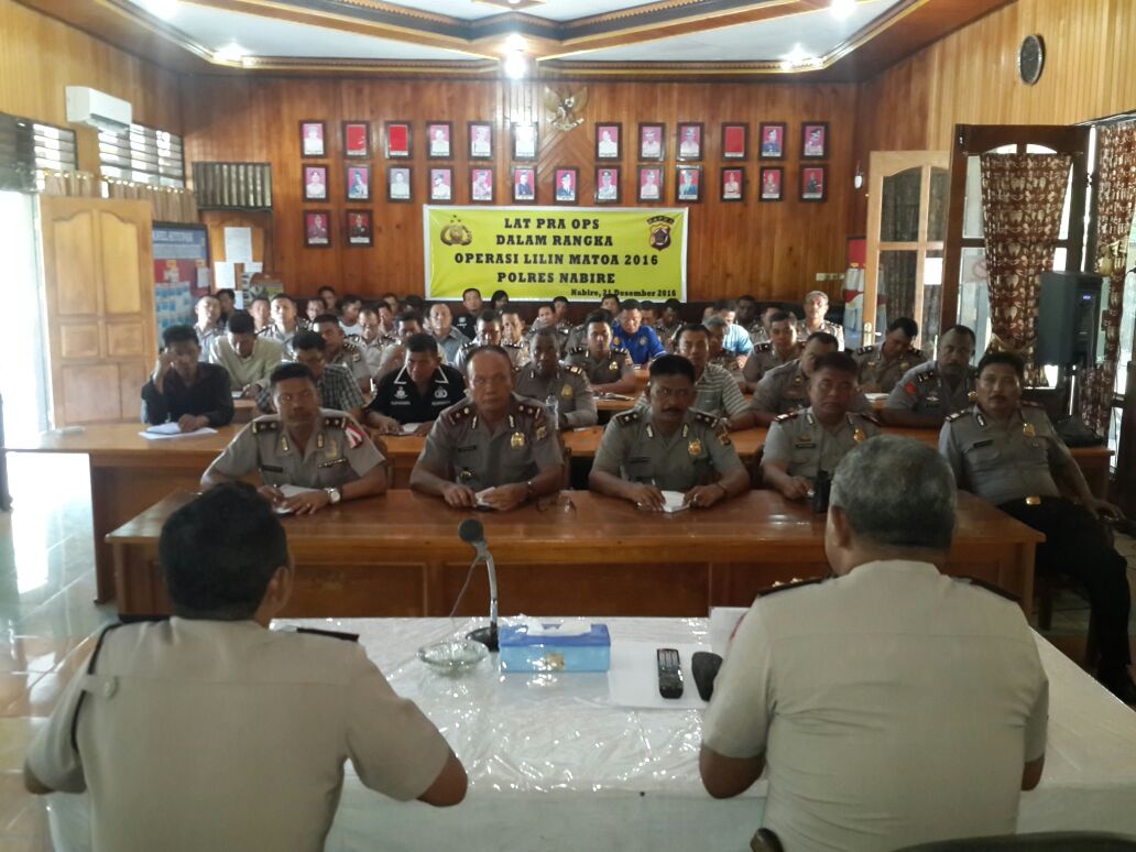 Dalam arahannya Kapolres Nabire mengucapkan terima kasih dari pimpinan Polri baik tingkat Mabes maupun tingkat Polda dan apresiasi dari masyarakat dalam pelaksanaan tugas pengamanan perayaan hari raya Natal 2016 dan Tahun Baru 2017 yang dilaksanakan oleh Polri sehingga perayaan hari raya Natal 2016 dan Tahun Baru 2017 bisa berjalan lancar dan situasi aman kondusif.