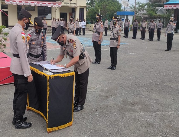 Nabire, Kapolres Nabire yang baru, AKBP I Ketut Suarnaya, S.IK, S.H, memimpin upacara serah terima jabatan tiga pejabat di jajaran Polres Nabire, Rabu (25/08/21).