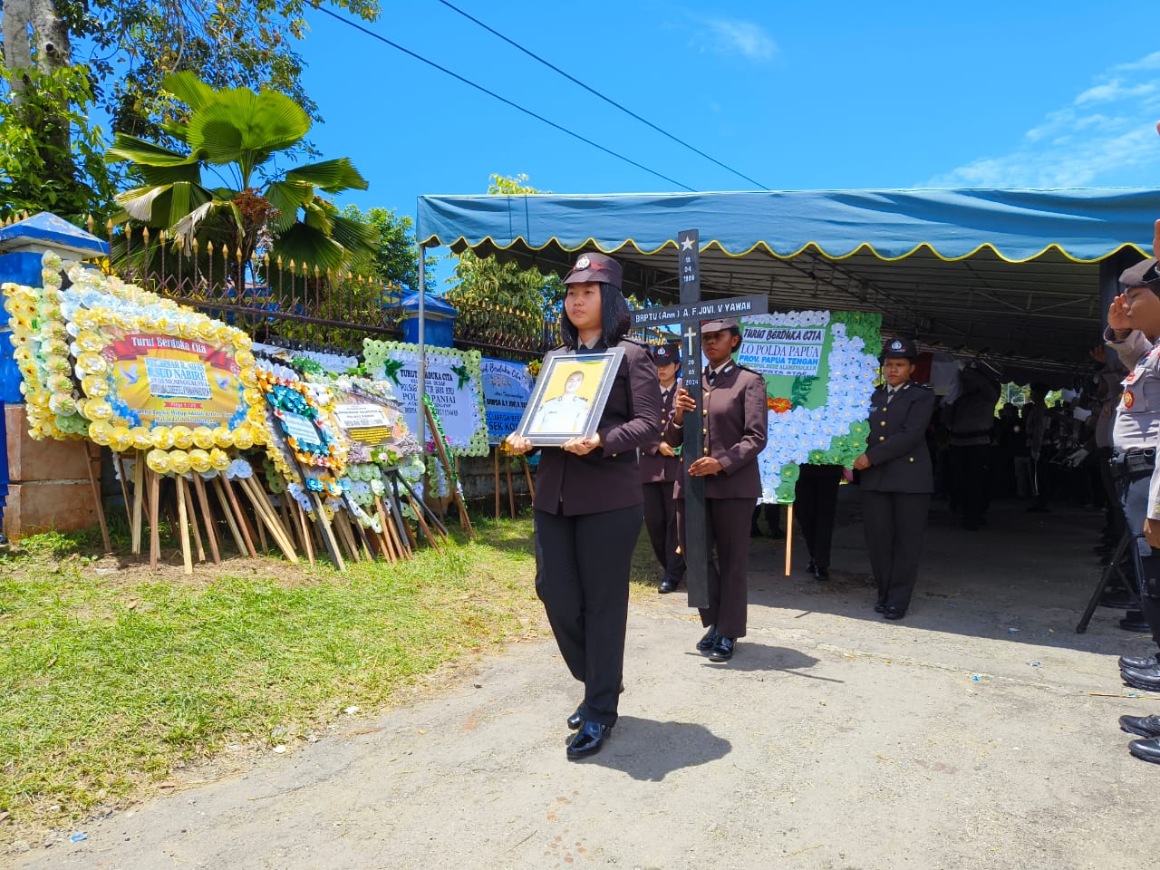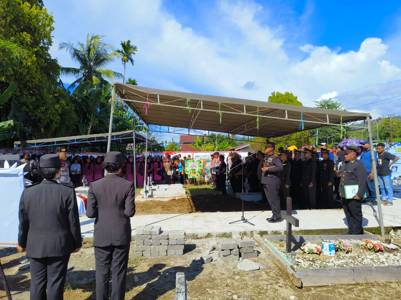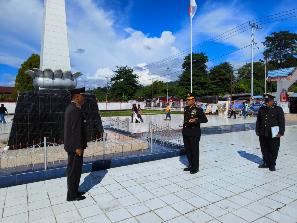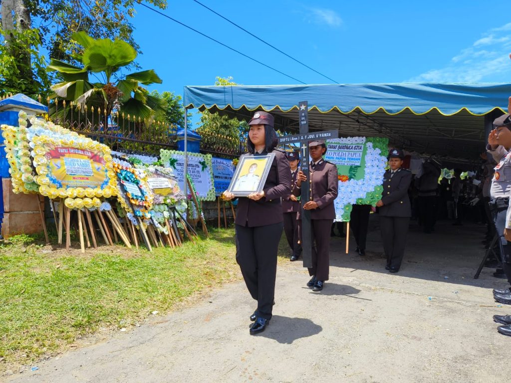 Kapolres Paniai, AKBP Abdus Syukur Felani, S.I.K., memimpin langsung Upacara Pemakaman Jenazah Alm. Briptu (Anm) Arnaldobert Fhin J. V. Yawan, yang mendapatkan penghargaan kenaikan pangkat satu tingkat lebih tinggi.
