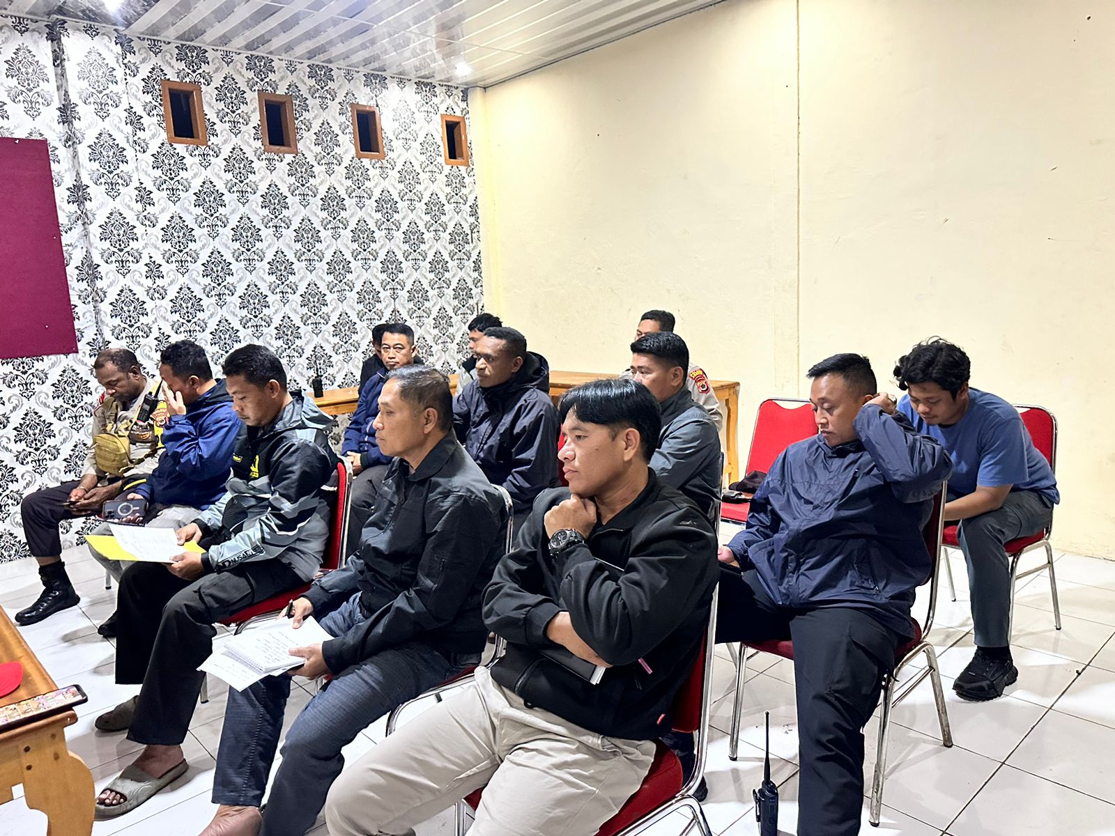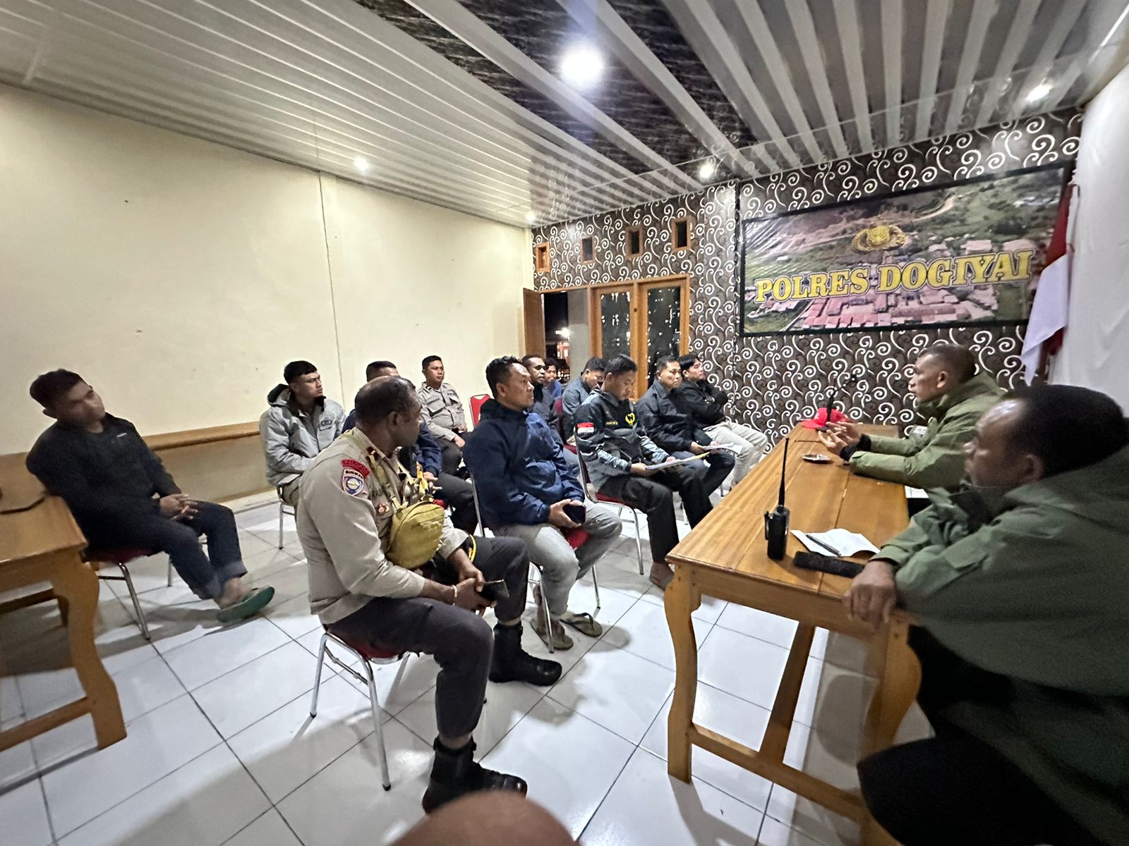 Dogiyai, Menjelang pelaksanaan KKR di Kabupaten Dogiyai, Kapolres Dogiyai, Kompol Sarraju, SH, memimpin langsung rapat, Sabtu (02/12/2023) malam.