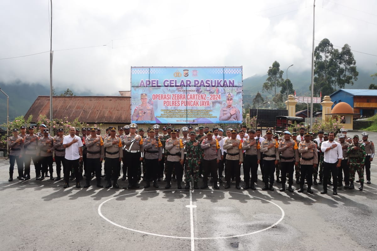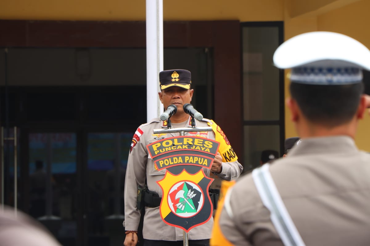 Kapolres Puncak Jaya Pimpin Apel Gelar Pasukan Dalam Rangka Operasi Zebra Cartenz 2024