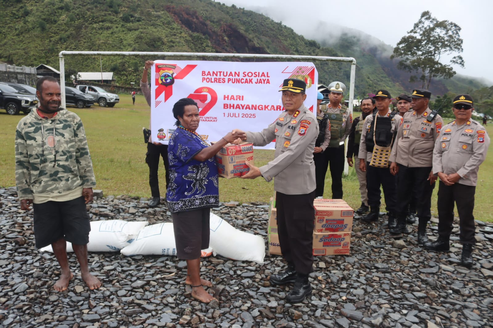 Kapolres Puncak Jaya mengatakan bahwa kegiatan ini merupakan bagian dari rangkaian peringatan Hari Bhayangkara ke-79 tahun 2025. Sebanyak 400 paket sembako disalurkan kepada masyarakat Kota Mulia yang membutuhkan.