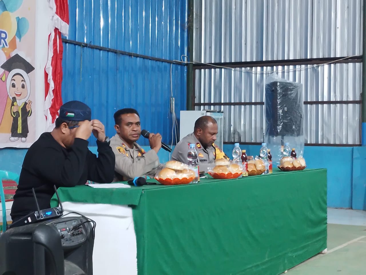 Dalam acara tersebut, hadir pula Kasat Samapta Polres Dogiyai Iptu Yusuf Habel Apiem, S.Th, Imam Masjid Alkautsar Ustadz Haeruddin, S.Hi, serta para ketua kerukunan dan warganya yang bermukim di sekitar Pasar Ikebo, Moanemani.