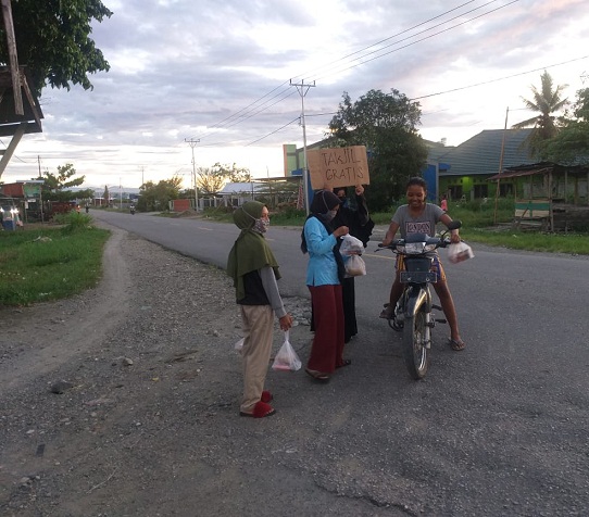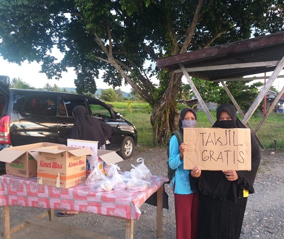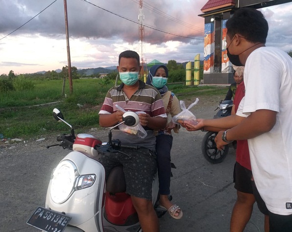 “Karang Taruna berinisiatif membagikan takjil gratis kepada warga yang lewat, sekaligus menumbuhkan rasa kepedulian kepada sesama di masa pandemi covid-19”, katanya.