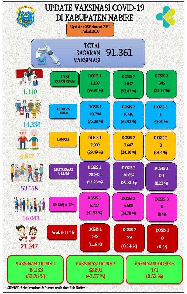 Sementara itu hingga hari Sabtu (05/02), cakupan vaksinasi di Nabire terus mengalami peningkatan walaupun tidak terlalu drastis.