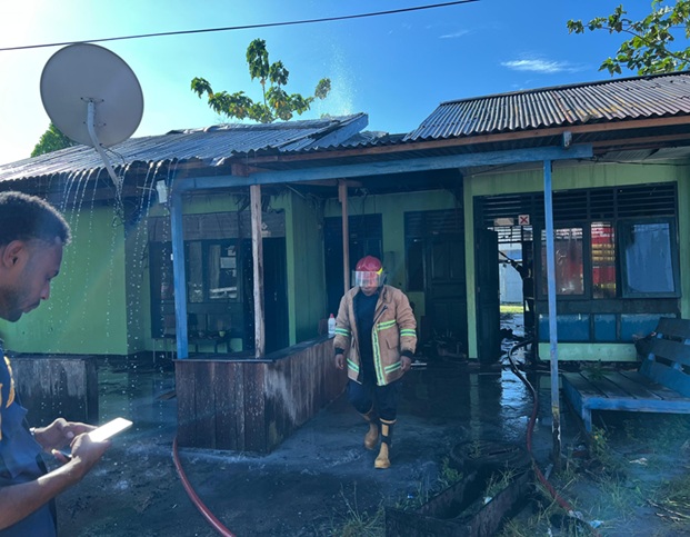 Kebakaran Hanguskan Rumah Dinas TNI AD di Kompi Senapan A Teluk Kimi, Diduga Akibat Korsleting Listrik