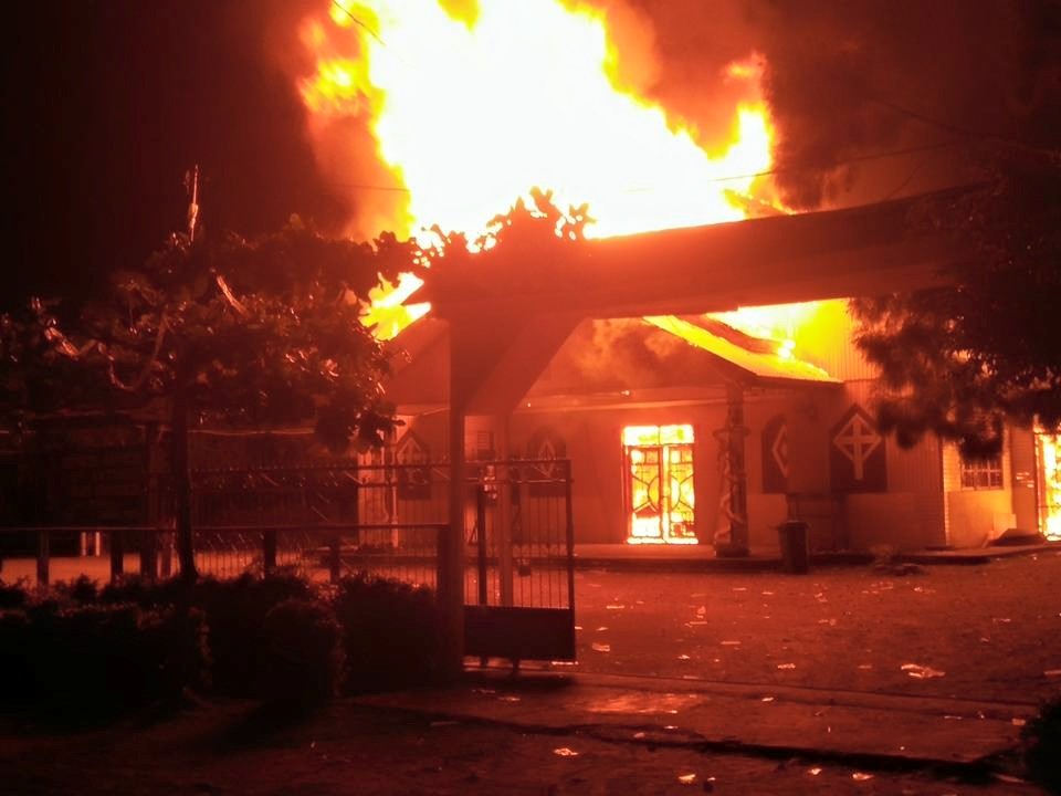 Kebakaran terjadi minggu dini hari dalam waktu berdekatan sekitar pukul 02.00 wit, di dua lokasi berbeda yaitu di Gereja ST. Antonius Bumi Wonorejo Nabire, dan Asrama Polisi atas Kotalama Nabire.