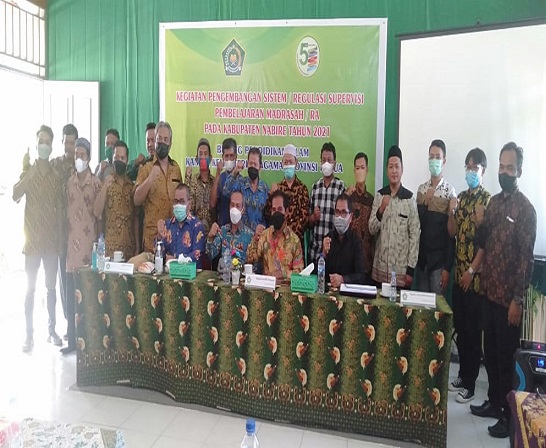 Nabire, Kantor Kementerian Agama Kabupaten Nabire melalui Seksi Pendidikan Agama Islam (Pendis) bekerjasama dengan Bidang Pendidikan Islam Kantor Wilayah Kementerian Agama Provinsi Papua melakukan Kegiatan Sistem Regulasi Supervisi Pembelajaran Madrasah / RA pada Kabupaten Nabire tahun 2021.
