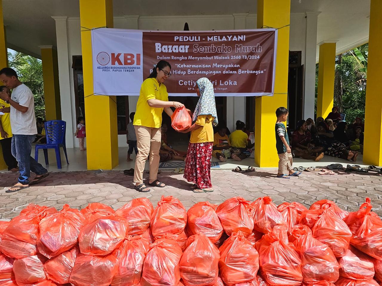 Nabire – Dalam rangka menyambut Tri Suci Waisak pada 23 Mei 2568 TB/2024, Keluarga Buddhayana Indonesia Provinsi Papua Tengah mengadakan kegiatan bakti sosial berupa Bazar sembako murah bertajuk “Keluarga Buddhayana Indonesia Peduli – Melayani.” Bazar ini dilaksanakan pada hari Minggu, 19 Mei 2024, mulai pukul 11.00 WIT hingga selesai di seluruh Vihara dan Cetya di bawah binaan Majelis Buddhayana Indonesia Provinsi Papua Tengah.