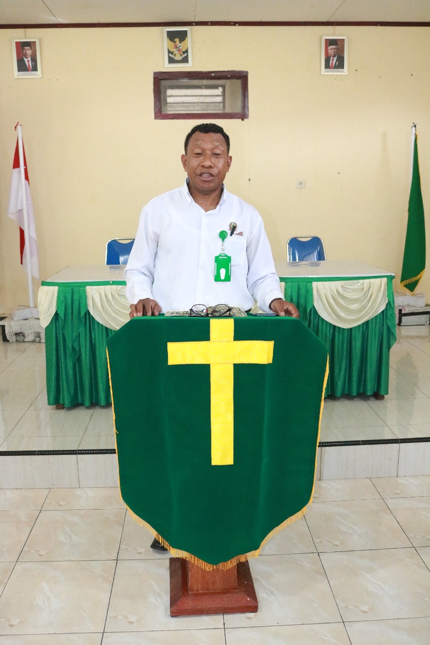 Ibadah dipimpinan langsung Oleh Kepala Sub Bagian Tata Usaha Kantor Kementerian Agama Kabupaten Nabire Robert Wopairi, S.Th dalam bacaannya 1 Petrus 4 : 8 dengan Thema ” Kasih menutupi Banyak Dosa”.