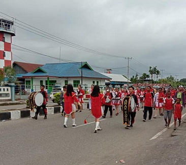 Jalan santai turut dimeriahkan penampilan Marching Band SMA Kristen Anak Panah Nabire.