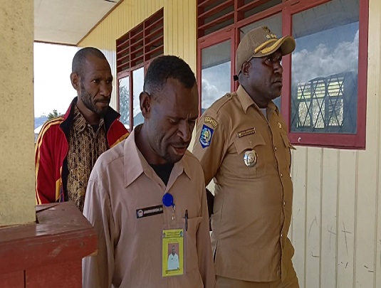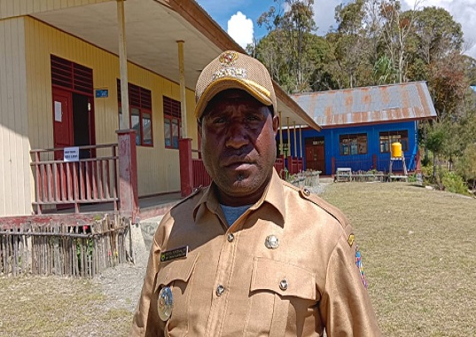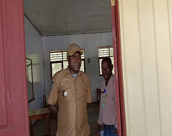 Intan Jaya, Kepala Distrik Sugapa, Misael Sondegau, telah memantau proses penyelenggaraan ujian nasional di beberapa sekolah menengah pertama di distrik Sugapa, Kabupaten Intan Jaya pada ujian nasional hari kedua ini (09/05/2023).