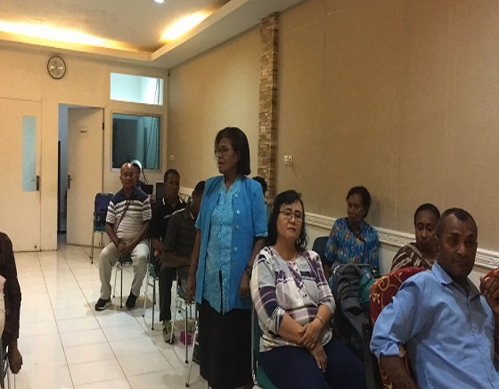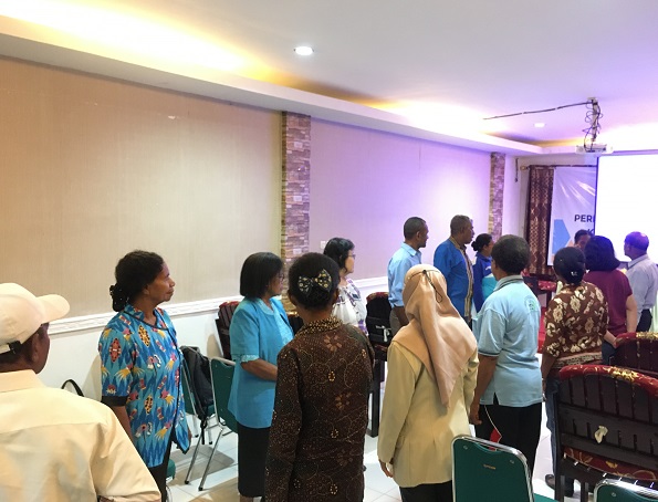 Acara diawali doa pembukaan yang dipimpin oleh Ham Rejauw, Sekretaris Kampung Air Mandidi, Distrik Teluk Kimi, kabupaten Nabire.