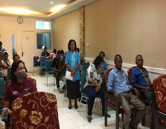 Usai doa, acara dilanjutkan dengan penyampaian materi oleh Sekretaris DP3A kabupaten Nabire, Ibu Wati Runggeari S.Sos.