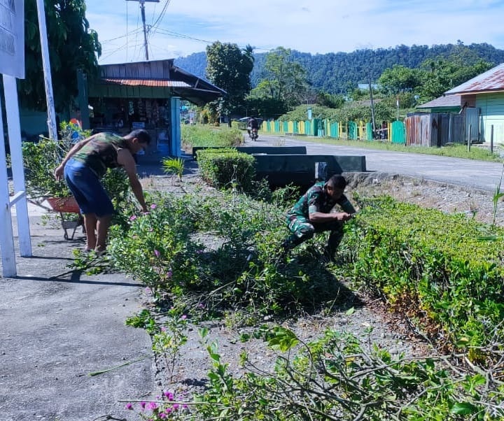 Nabire, Dalam rangka menjaga kerapihan dan keindahan Pos Babinsa Koramil 1705-02/Napan, yang berlokasi di kampung Biha, Distrik Makimi, kabupaten Nabire, anggota Koramil melaksanakan kegiatan kerja bakti.