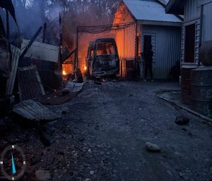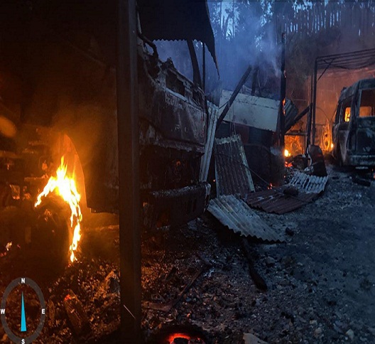 Peristiwa pembakaran terjadi pada Jumat sore (29/10). Insiden tersebut mengakibatkan garasi mobil yang saat itu sedang terparkir mobil ambulans, dan mobil tangki air ludes terbakar, serta kios. (Koreksi sebelumnya, bukan kantor yang dibakar).