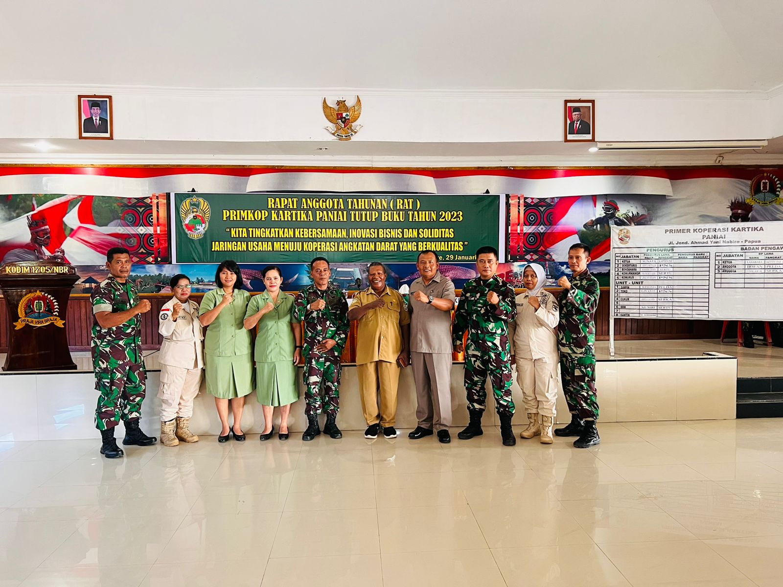 Nabire, Kodim 1705/Nabire melaksanakan Rapat Anggota Tahunan (RAT) Primkop Kartika Paniai dengan Tema “Kita Tingkatkan Kebersamaan, Inovasi Bisnis dan Soliditas Jaringan Usaha Menuju Koperasi Angkatan Darat yang Berkualitas”.