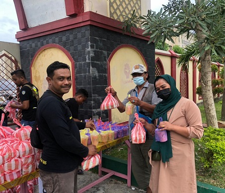 “Di bulan penuh ampunan ini, para anggota komunitas ingin membangun kepeduliandengan sesama warga Nabire. Adapun takjil yang dibagikan ini berjumlah 500 bungkus takjil,” kata Jhul Basri.