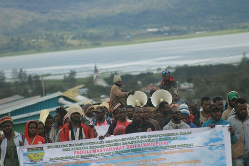 Usai menggelar aksi damai 17 juli 2017 lalu terkait persoalan sampah di kabupaten Deiyai, warga kabupaten Deiyai yang terdiri dari Komunitas Peduli Masyarakat & Alam Deiyai (KPMAD), serta sejumlah mahasiswa, menyerahkan pernyataan sikap hasil aksi damai tersebut kepada DPRD kabupaten Deiyai, kamis 27 juli 2017.