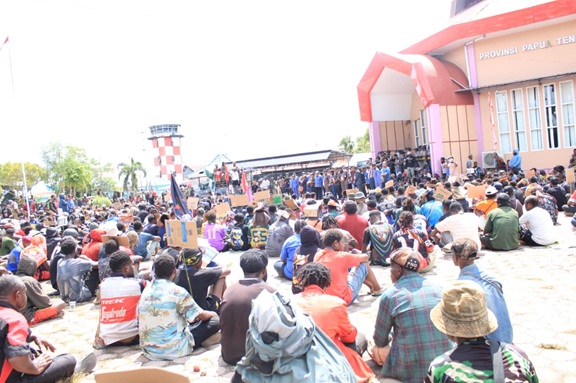 Ribuan massa yang berkumpul di kawasan Karang Pasar melakukan long march menuju Kantor DPR Papua Tengah untuk menyampaikan aspirasi secara langsung kepada para wakil rakyat. Aksi berlangsung tertib dengan pengawalan aparat keamanan.