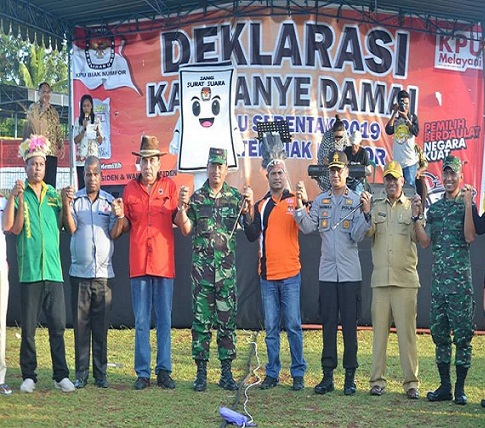 Guna menciptakan penyelenggaraan Pemilu 2019 yang aman dan lancar, KPU Biak Numfor menggelar Deklarasi Kampanye Damai Pemilu 2019, dipusatkan di lapangan Cendrawasih, kabupaten Biak Numfor, Selasa (25/09).