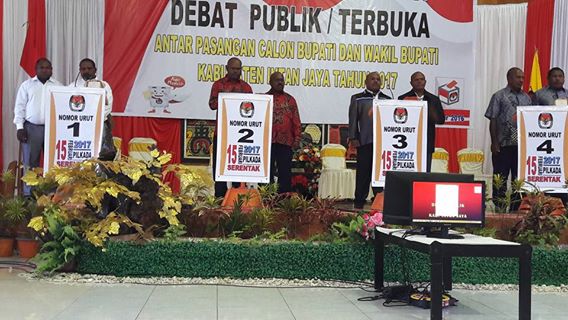 Bertempat di Guest House jalan Merdeka Nabire, senin kemarin (19/12), KPU kabupaten Intan Jaya menggelar acara debat terbuka kepada empat pasangan calon Bupati dan Wakil Bupati Intan Jaya.