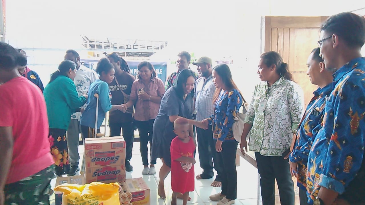 Dalam kunjungan ini, KPU Nabire, diwakili Ketua KPU, Sarlota Wartanoy memberikan santunan sembako dan berdoa bersama dengan anak yatim piatu dan difabel.