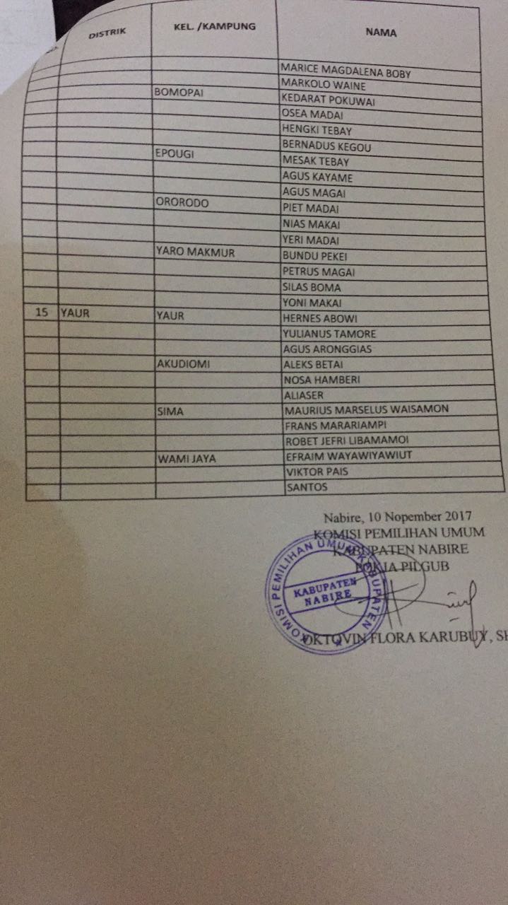 Berikut daftar nama calon anggota PPS yang ditetapkan KPU Nabire, 10 November 2017 :