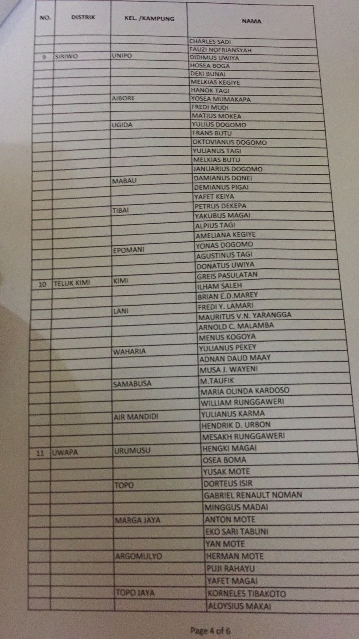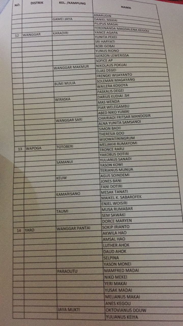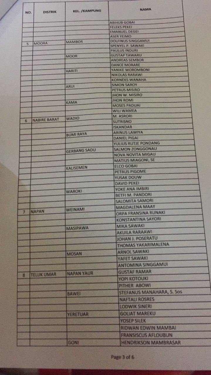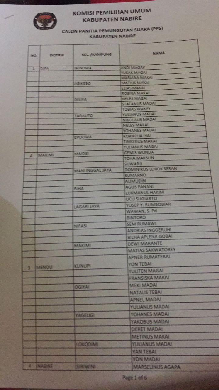 Berikut daftar nama calon anggota PPS yang ditetapkan KPU Nabire, 10 November 2017 :