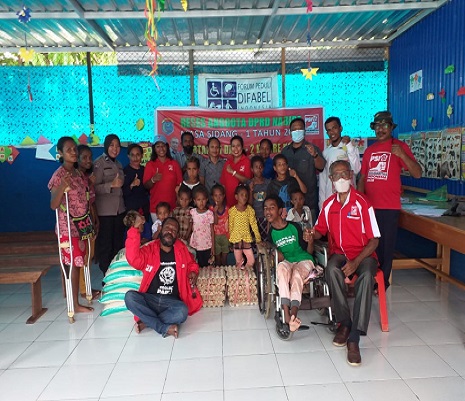 Dalam kunjungan ini, Klemens Danomira menyerahkan bantuan sosial berupa sembako dan bingkisan bagi anak-anak Difabel dan Yatim di Yayasan Difabel Nabire.