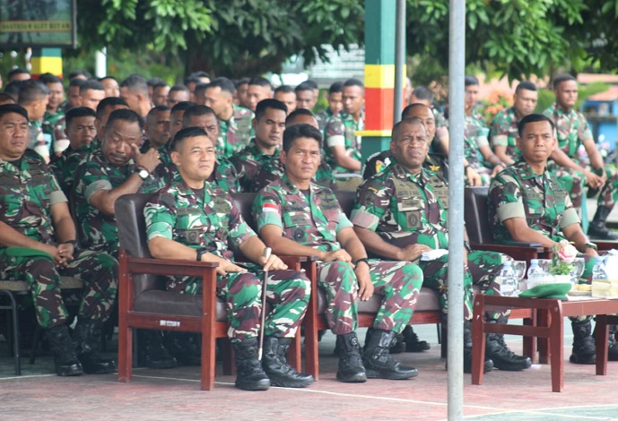 “Dan saya berharap kepada seluruh prajurit khususnya kepada Parjurit yang ada di wilayah Nabire harus bisa menjalankan tugas dengan penuh rasa tanggung jawab. Bisa merendah untuk mengambil hati dan perasaan masyarakat sekitar di tempat tugasnya. Serta hindari pelanggaran sekecil apapun saat melaksanakan tugas operasi maupun kewilayahan serta selalu menjaga kesehatan selama di tempat penugasan”, tutup Danrem.