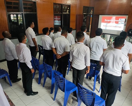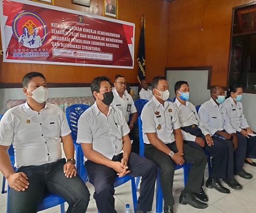 Kegiatan pencanangan zona integritas dan deklarasi janji kinerja Jajaran Kanwil Kemenkumham Papua Tahun 2022 diikuti oleh Lembaga Pemasyarakatan Kelas IIB Nabire secara virtual dilakukan dengan tertib dan penuh khidmat serta diikuti oleh seluruh pegawai.