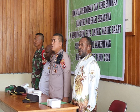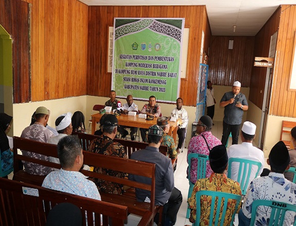 Nabire, Bertempat di Aula Kantor Distrik Nabire Barat, Kampung Bumi Raya (SP1), telah dilaksanakan Sosialisasi dan Launching Kampung Moderasi Beragama. Acara ini diresmikan oleh Kepala Kantor Kementerian Agama Kabupaten Nabire, Yafeth Iyai, S.Th., yang didampingi oleh Kepala Seksi Bimas Islam, Drs. Gani Difinubun.