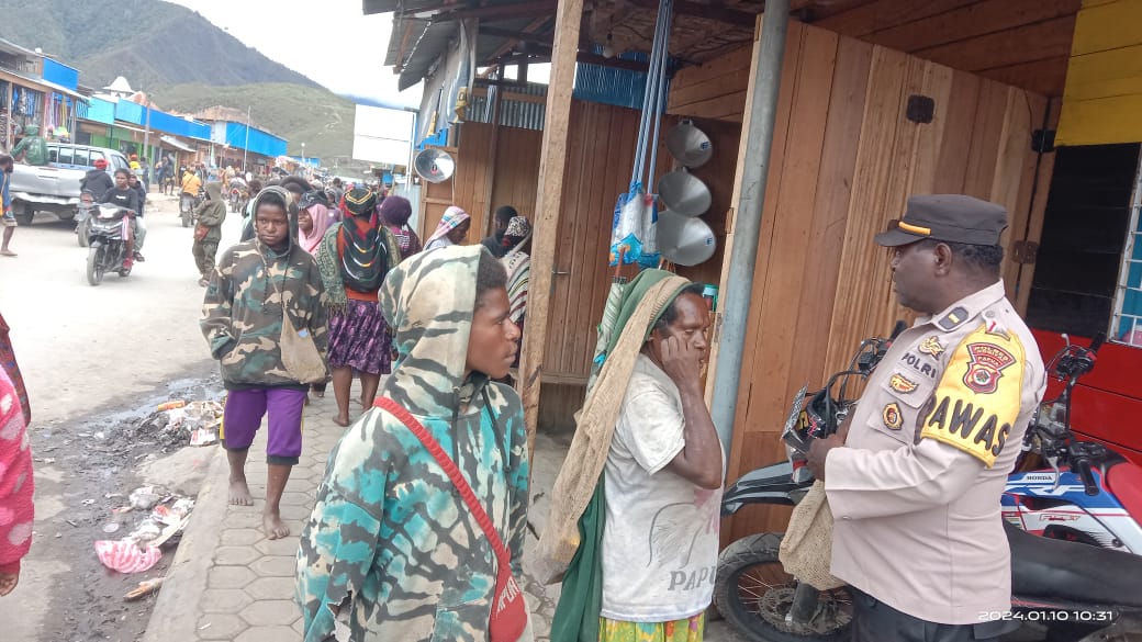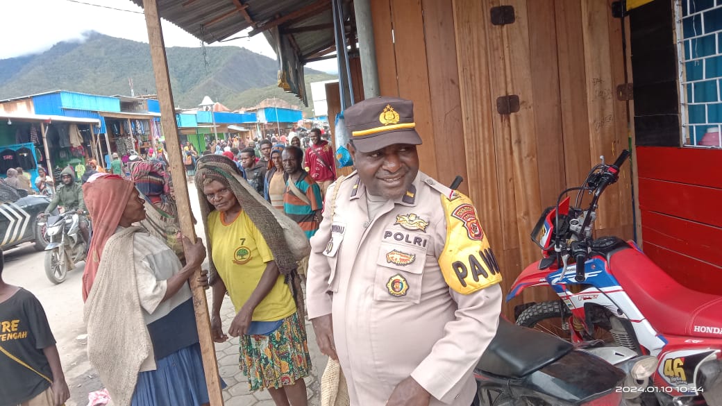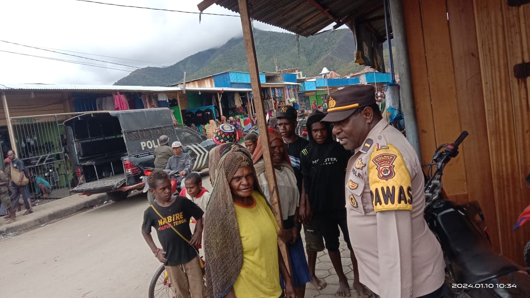 Dogiyai, Bertempat di Pasar Ikebo Moanemani, Dogiyai, Kasat Binmas Polres Dogiyai, Ipda Onesimus Iyowau, S.Th, tak henti-hentinya mengimbau masyarakat untuk selalu menjaga kamtibmas.