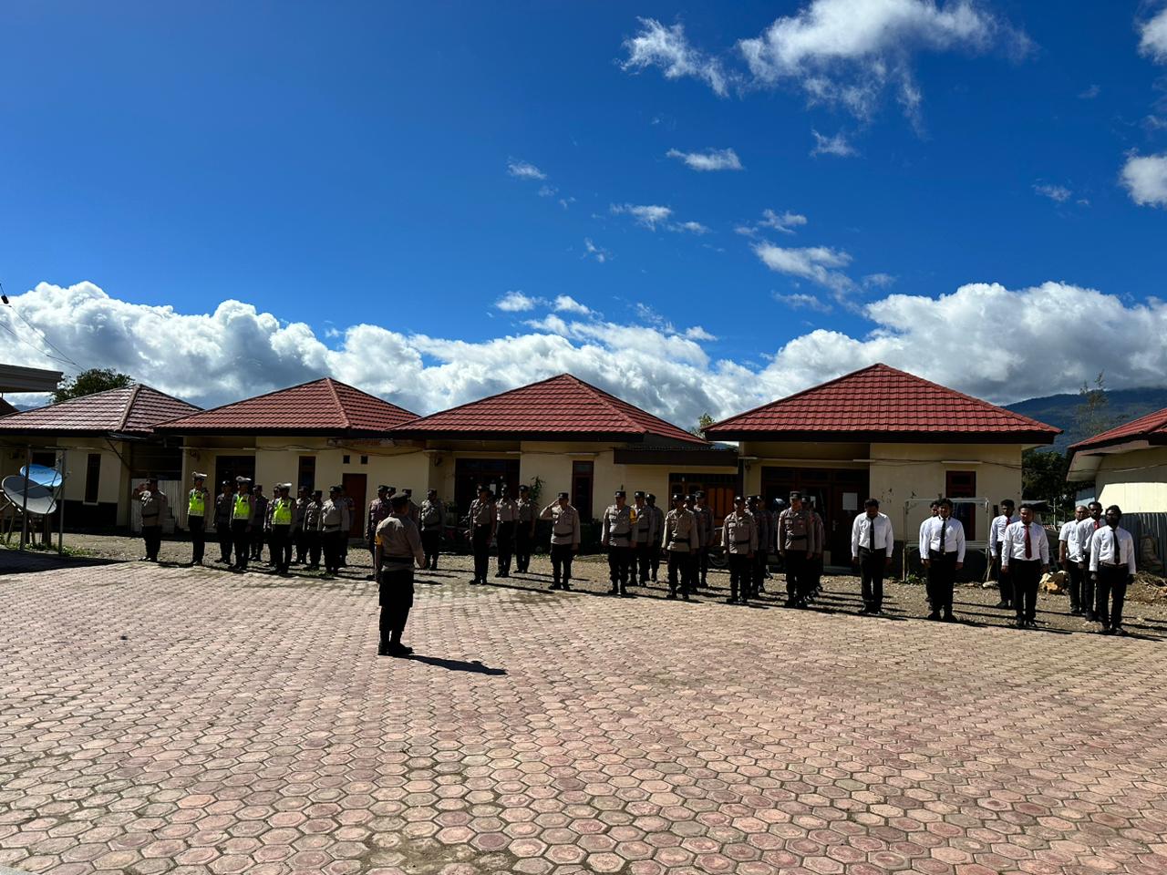 Dogiyai, Lima personel Polres Dogiyai mengikuti upacara pelantikan Kenaikan Pangkat Luar Biasa (KPLB), Senin (11/12/2023).