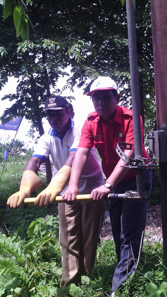 Manajer PT PLN Rayon Nabire, Sahat Hutapea SE bersama Kepala Distrik Makimi Saverius Tebay SSTP, meresmikan pengoperasian jaringan listrik 24 jam bertempat di SP4 Distrik Makimi Nabire, 14 november 2015.