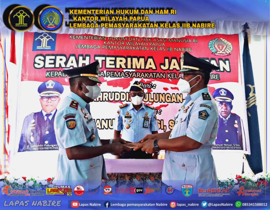 Nabire, Manuel Yenusi, S.Sos resmi menggantikan Syahruddin Pulungan sebagai Kepala Lembaga Pemasyarakatan Kelas IIB Nabire.