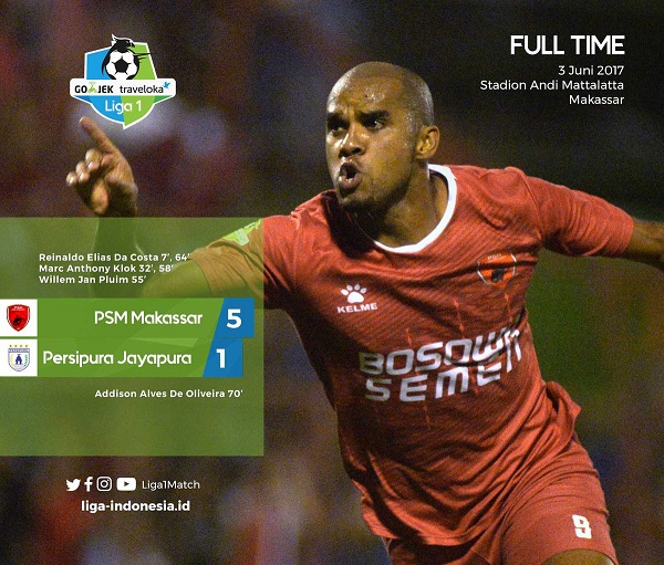 Laga big match yang mempertemukan pemuncak klasemen sementara Liga 1 Gojek Traveloka, PSM Makassar melawan Persipura Jayapura, berakhir dengan skor diluar dugaan, tuan rumah PSM membantai Persipura tanpa ampun dengan skor telak 5-1, di Stadion Andi Mattalatta, Makassar, sabtu 3 juni 2017.