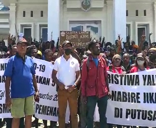 Dalam spanduk yang dibawa massa, massa mengancam akan menjadikan Nabire seperti peristiwa Yalimo jika tidak diputus putusan Dismisal.