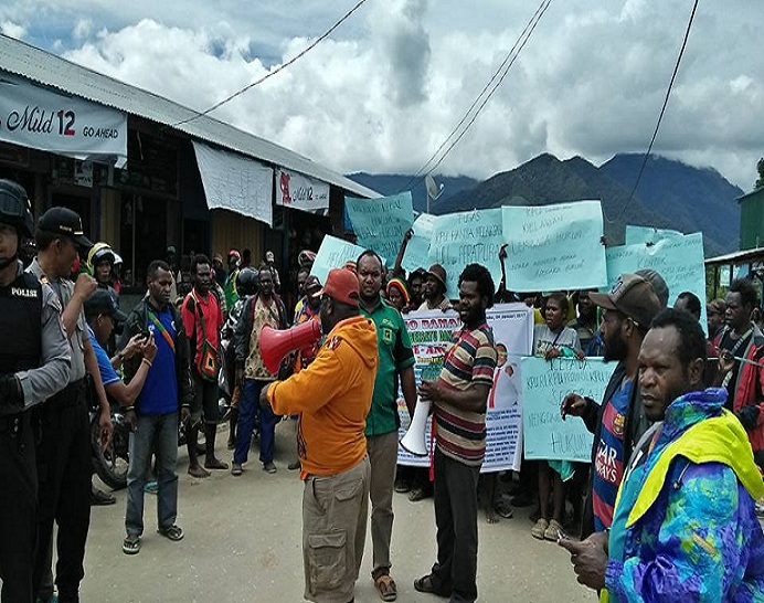 Massa pendukung pasangan calon Bupati dan Wakil Bupati kabupaten Dogiyai, nomor urut 5, Apedius Mote dan Freny Anouw, yang menamakan dirinya Koalisi Dogiyai Bersatu & Bangkit Mote-Anouw, menggelar aksi demo di Kantor KPUD kabupaten Dogiyai, rabu (04/01).
