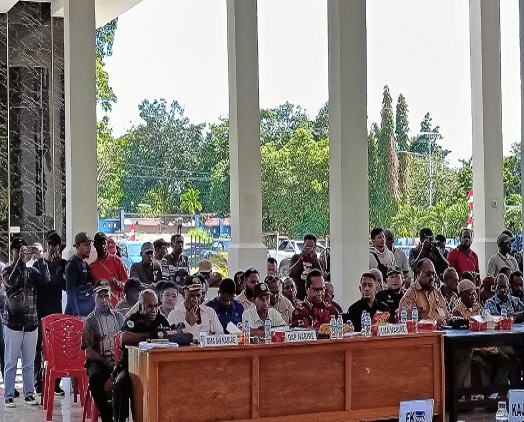 Nabire, Bertempat di Aula Wicaksana Laghawa Polres Nabire, telah dilaksanakan mediasi penanganan konflik tapal batas di kampung Topo dan Kampung Urumusu antara Kelompok Adat Suku Dani, Suku Mee dan Suku Wate, Selasa (13/06/2023).