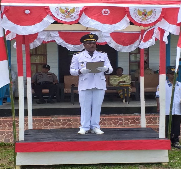 Kepala Distrik, Welly Saroi S.Sos dalam amanat upacara Hari Kemerdekaan membacakan sambutan tertulis Bupati Nabire, yang intinya mengajak seluruh komponen masyarakat untuk sama-sama mengisi pembangunan dengan bekerja keras guna mewujudkan pembangunan dan pelayanan masyarakat yang lebih baik, serta meningkatkan SDM yang unggul di Nabire.