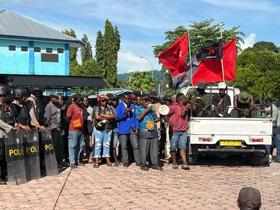 Di akhir pernyataan, Melkias menyampaikan apresiasi kepada massa aksi yang tetap tertib saat menyampaikan aspirasi meskipun mengalami lapar, haus, dan sakit.