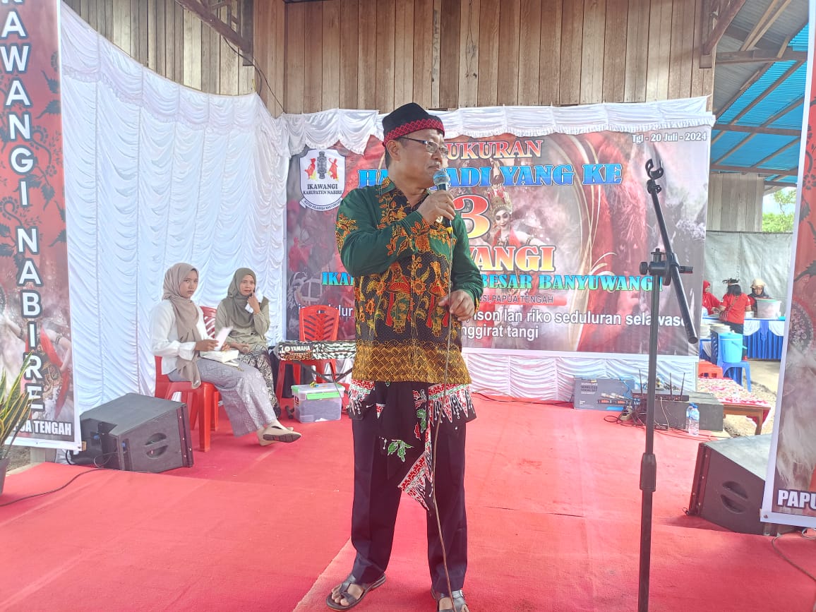 Nabire, 20 Juli 2024 – Keluarga besar Ikawangi Banyuwangi Nabire (IKAWANGI) merayakan hari jadi yang ke-3 dengan penuh suka cita. Acara yang berlangsung di kediaman Bapak Samsir, selaku ranting Wanggar Makmur, di jalan poros TSM kampung Wanggar Makmur Kaladiri 2, dihadiri oleh sejumlah tokoh penting, termasuk Ketua DPRD Kabupaten Nabire, Ketua Umum HKJM H. Iskandar, Kepala Dinas Pertanian Bapak Sumardi, A.Sip, Kepala Kampung Kali Semen, para ketua kerukunan, serta tamu undangan lainnya.